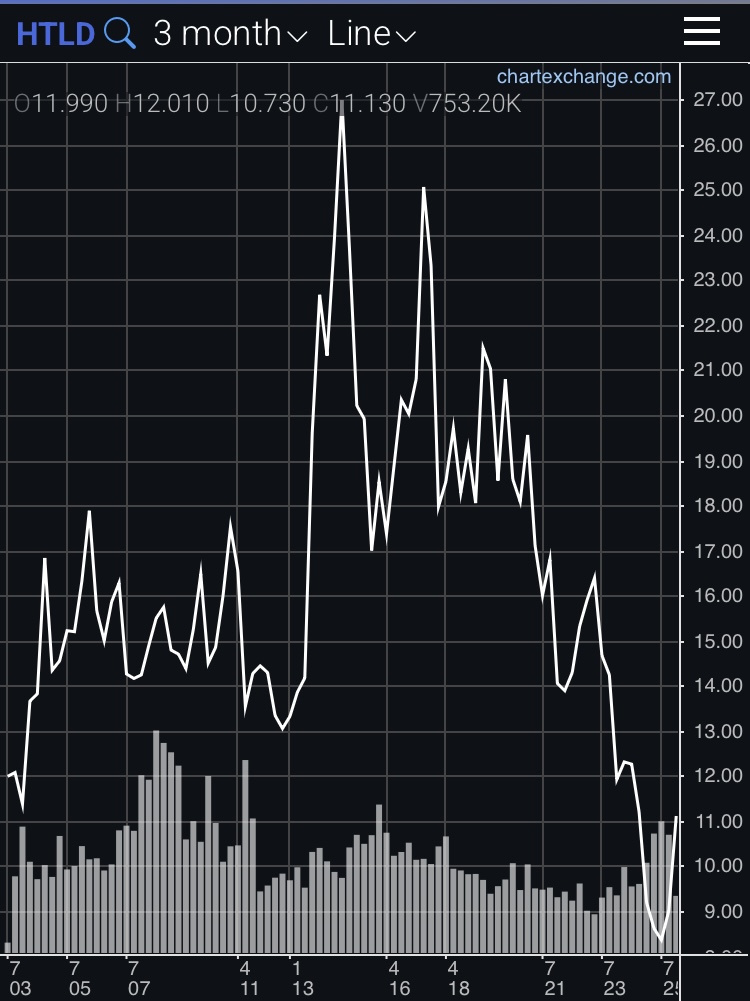 この表の右下にある「HTLD」という銘柄がアメリカの内陸部を運行する運送会社「ハートランド・エクスプレス」です。
