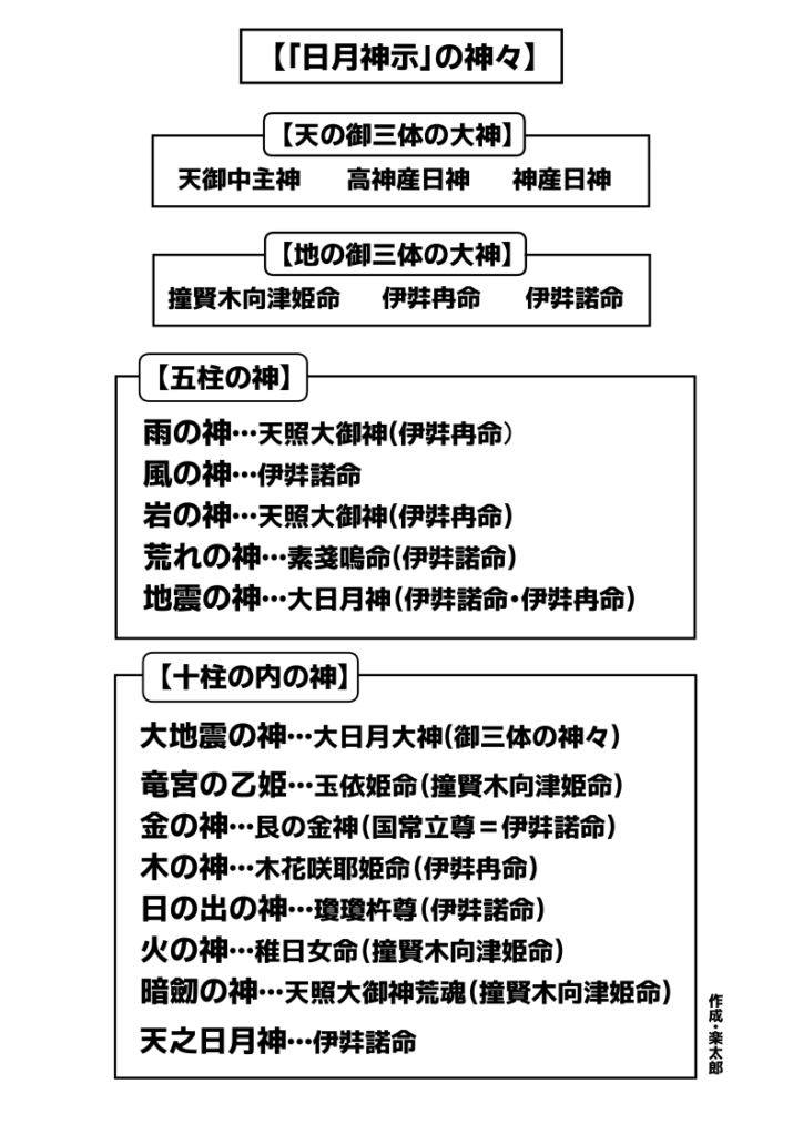 では、私が神示を読んだ上で比定した「十柱の神々」の内訳を挙げてみます。
