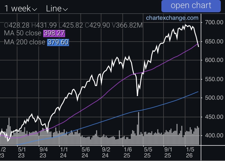 以上がS&P500株価指数のチャートですが、この数週間の下げ幅で2025年8月頃、約7ヶ月前の水準まで相殺されています。